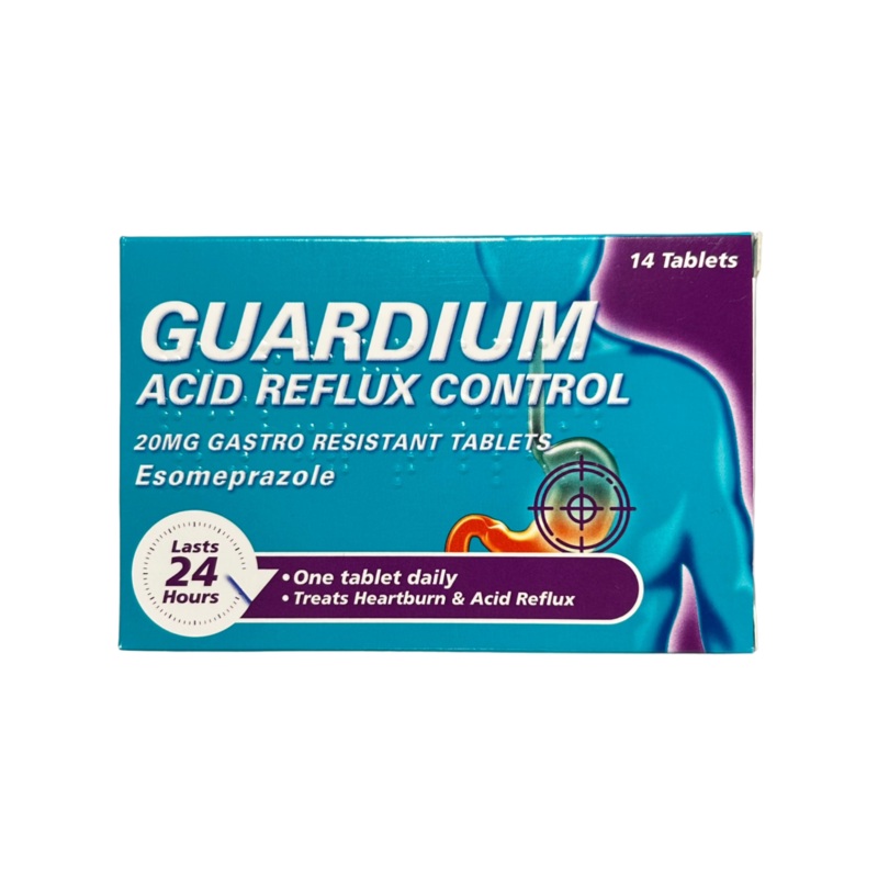 Control your acid reflux with Guardium Acid Reflux Control 20mg Esomeprazole. Each pack contains 7 tablets of the active ingredient esomerpazole, providing effective relief. Say goodbye to heartburn and enjoy the benefits of a comfortable, reflux-free life.
