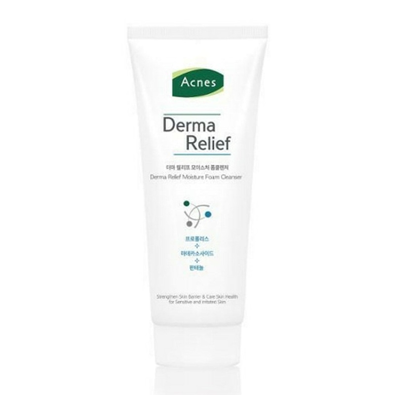ACNES Derma Relief Moisture Foam Cleanser 200mlDescriptionHelps wash away dirt, dead skin cells, and fine dustLeaves skin feeling fresh and moisturizedKeeps skin smooth and healthyHow to useDispense a small amount on wet hands and gently cleanse the face,