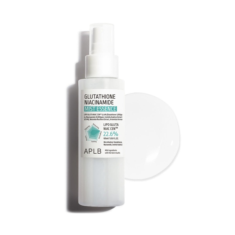 APLB Glutathione Niacinamide Mist Essence 105mlDescriptionA moisturizing essence helps replenish skin condition with deep hydration to improve fine lines and wrinkles. Enriched with Glutathione Niacinamide and Centella Asiatica to increase skin elasticity