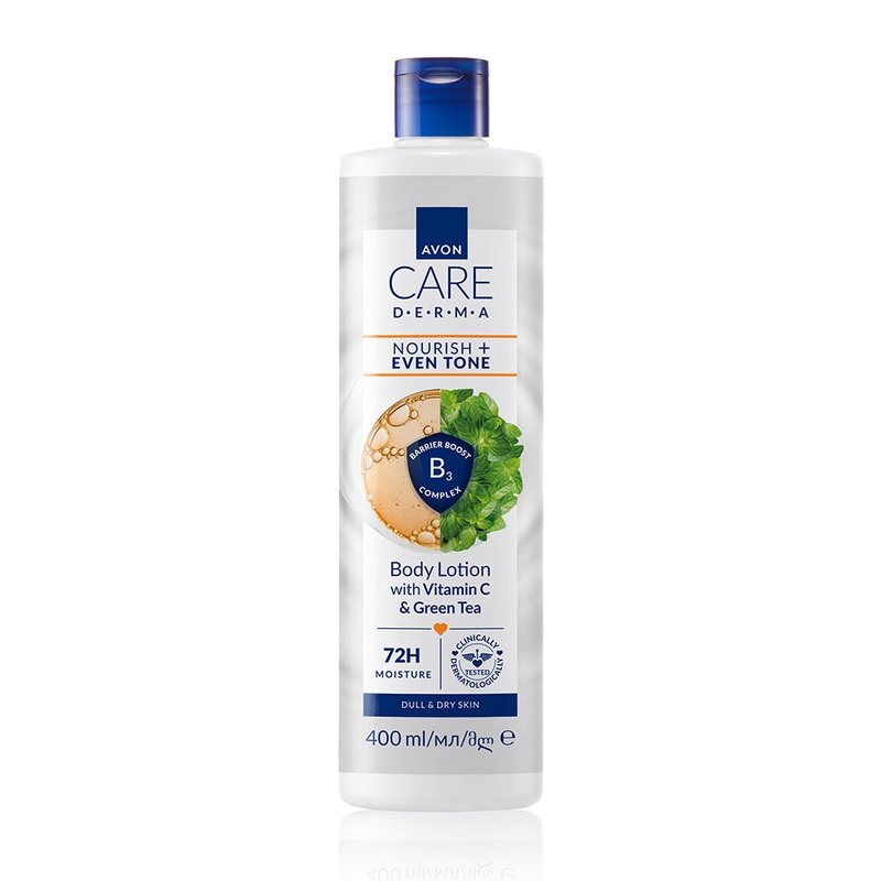 All you need to know:Say hello to Avon Care Derma Nourish + Even Tone Body Lotion - expertly formulated to give you results you can see and feel. Fast-absorbing and gentle on skin, this lotion helps to reduce pigmentation for an evened-out skin tone, while