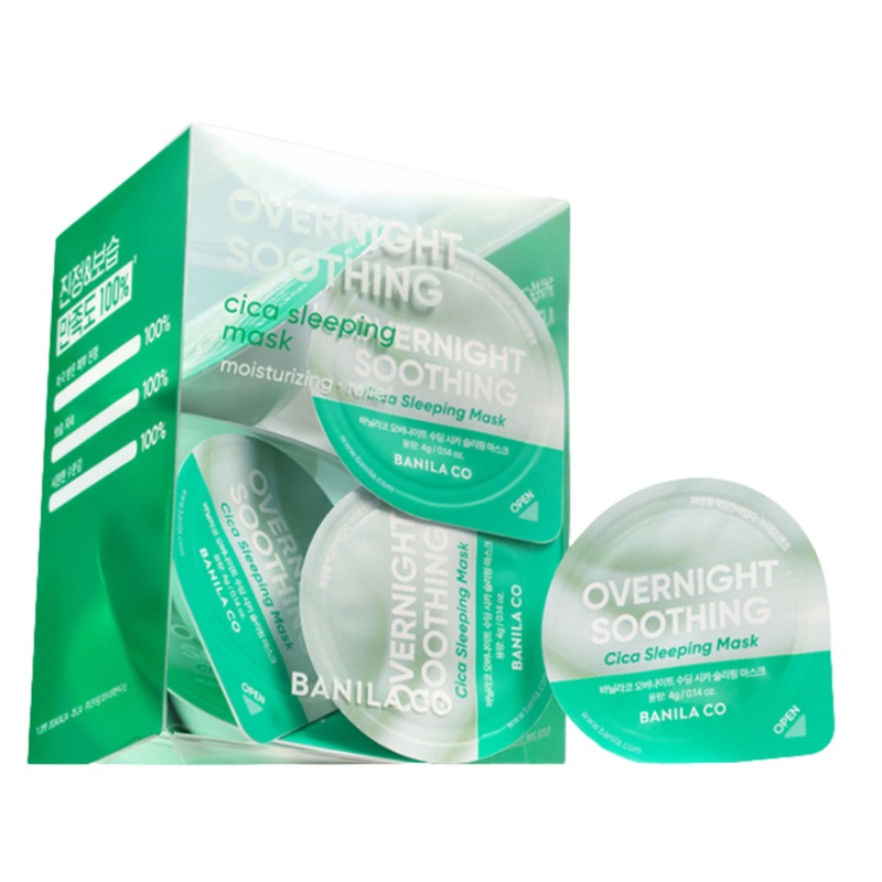 BANILA CO Overnight Soothing Cica Sleeping Mask Travel Kit (4g 12ea)DescriptionThe BANILA CO Overnight Soothing Cica Sleeping Mask Travel Kit (4g x 12ea) is a convenient, travel-friendly version of the popular full-sized mask. Each 4g sachet is individuall