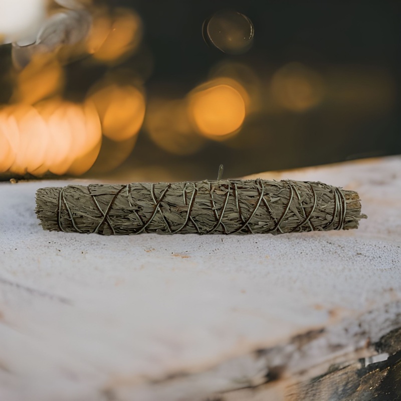 Size:Approximately 7 inches in length (17.5 cms)Origin:Grand Mesa, ColoradoAll Fluorescent Ranch products are sustainably harvested in traditional manners.Blue Sage or Grandmother Sage - cleansing of negativity.Palo Santo - Purification, bring good luck, c