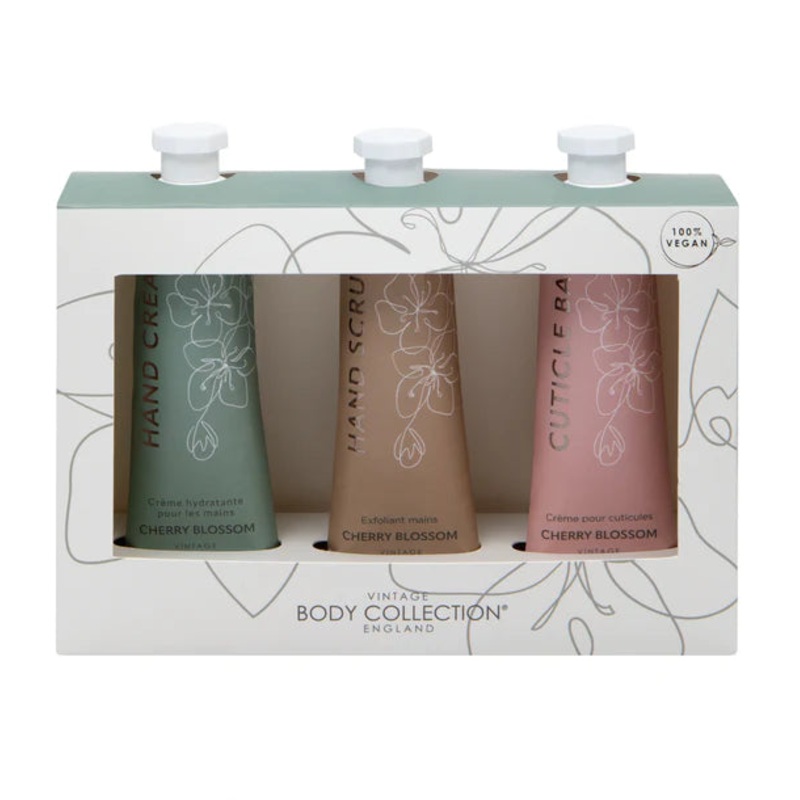 Introducing the Body Collection Hand Trio Set, a set of three hand creams designed to nourish dry, rough skin. Formulated with natural ingredients, including Shea and Cocoa Butters, it provides intense hydration for super soft and supple hands. Perfect for