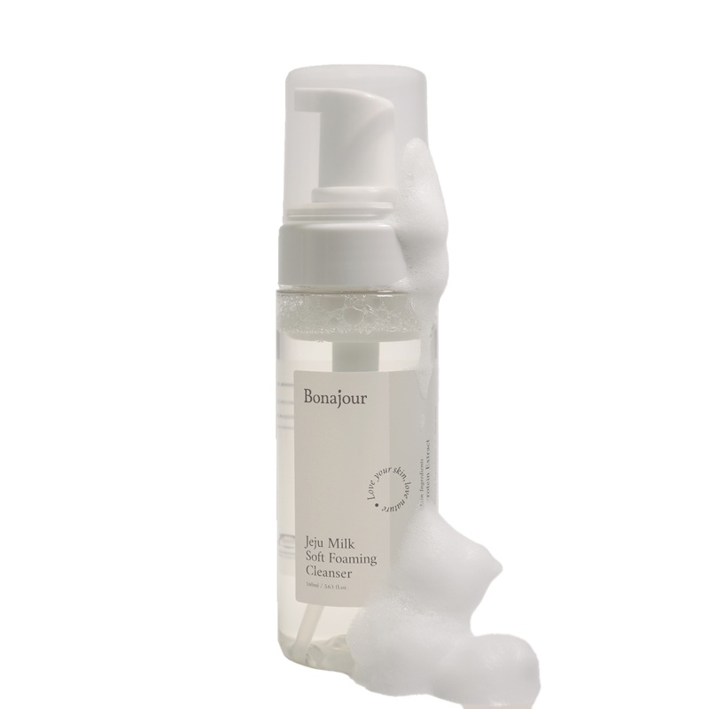BONAJOUR Jeju Milk Soft Foaming Cleanser 160mlDescriptionThe subacid cleansing foam finds a right ph for healthy skin.The foam is recommended for both sensitive and dry skin since it leaves no dryness after washing a face.How to useMorning Cleansing:Lather