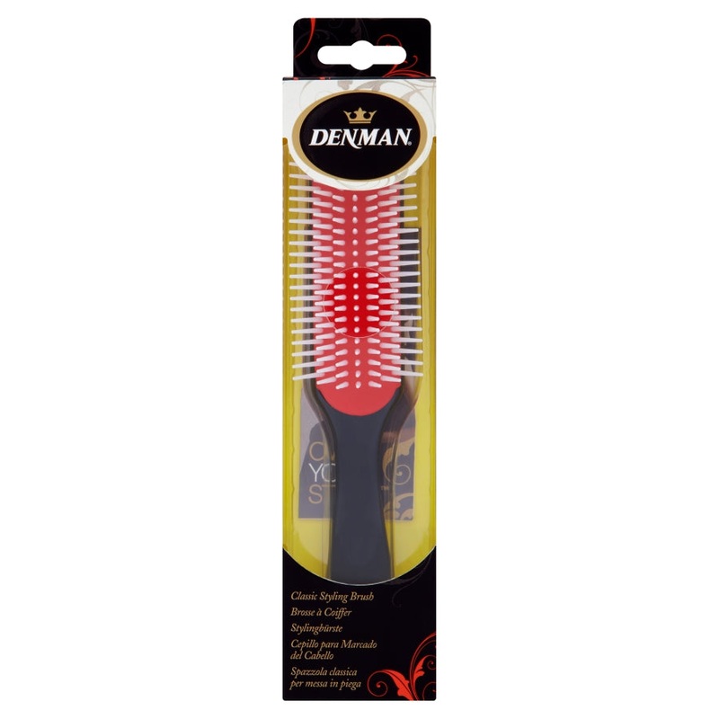The Denman styler brush is the perfect product for gently grooming all hair lengths and types. The hairbrush is also ideal for straightening long hair during blow-drying. The nylon pins are set into an air-cushioned pad for maximum comfort during use. The natural rubber pad gently penetrates the hair to smooth and dress the style.