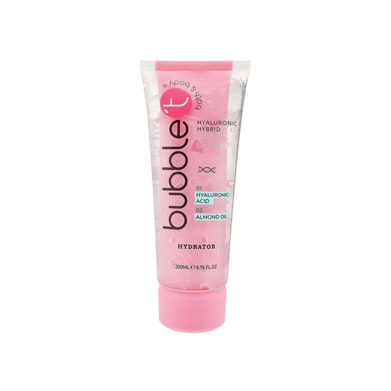 Experience deep hydration with Bubble t Body Lotion Hydrator Hyaluronic Hybrid 200ml. This lightweight lotion combines the power of hyaluronic acid to lock in moisture, leaving your skin feeling soft, smooth, and refreshed all day. Perfect for daily use, i
