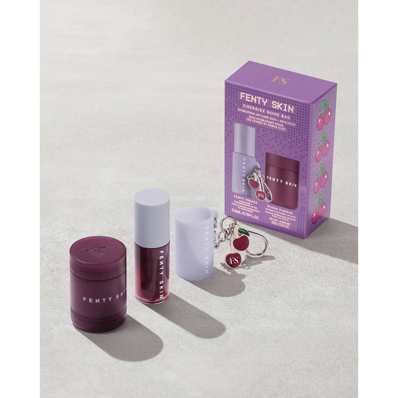 Give in to your cherry craving with this limited-edition lip care duo featuring a Black Cherry scent and exclusive Cherry keychain. Treat your lips to a stronger moisture barrier with Fenty Treatz Lip Oil. And, get smoother, firmer, bouncier lips in just 1