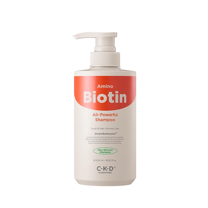 CKD Amino Biotin All-powerful Shampoo 750mlDescriptionA hair loss relief functional shampoo that provides double care for a weakened scalp and hair withthesynergyofBiotin and ProteinHow to useSufficiently wet your hair and scalp with warm water, and evenly