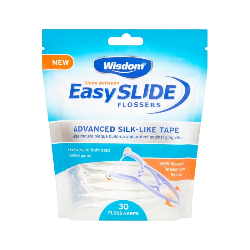 Wisdom Clean Between Easy Slide Flossers are incredibly easy to use. With a Tension Control System to hold the flossing tape taut, they slide effortlessly into even tight gaps between the teeth, helping to make it easier to remove plaque and food particles for cleaner, healthier teeth and gums.