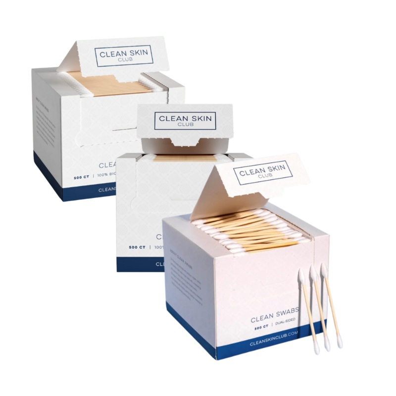 Clean Skin Club Clean Swabs bundle includes is available in: 3 packs of 500 swabs each