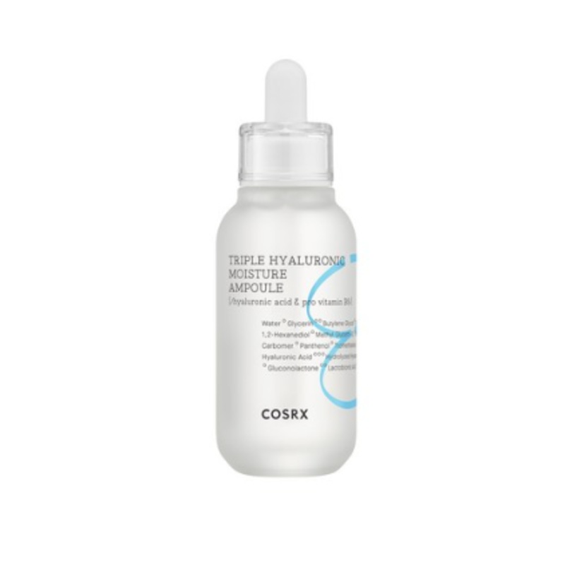 COSRX Hydrium Triple Hyaluronic Moisture Ampoule 40mlDescription- A viscous moisturizing serum that leaves skin supple and moisturized to provide deep hydration for dry, dehydrated skin types.- High molecular Hyaluronic Acid creates an invisible protective