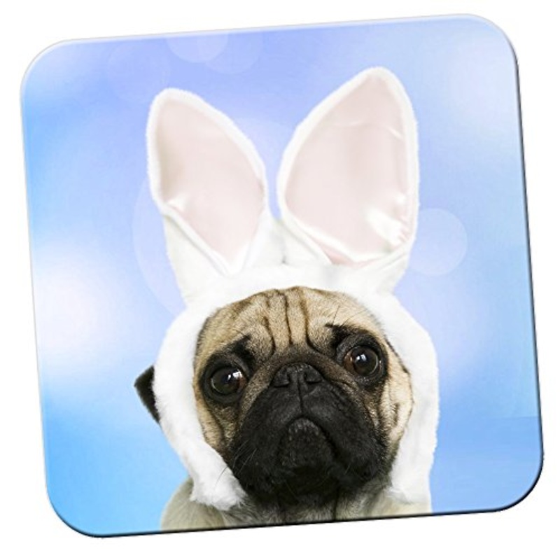 Cute Pug in Rabbit Ears Coaster/Pack of Coasters Turquiose – Pug in Rabbit Ears 2 x Coaster