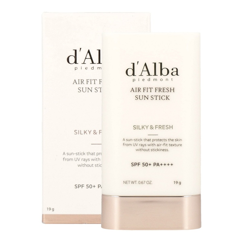 d'Alba Air Fit Fresh Sun Stick SPF50+ PA++++ 19gDescriptionIt is a sun stick that can be easily applied anywhere on the face and body.It has skin soothing and sebum control effects, so it is effective in blocking UV rays or soothing the skin during outdoor