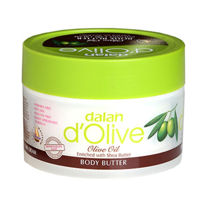 Oil Olive Body Butter We created our Body Butter for you with 70 years’ experience in producing 100% olive oil soaps, guaranteed by Dalan quality. Enriched by Shea Butter and Aegean olive oil with silicon free and peg free formula with natural oils help to strengthen, rejuvenate, soften and give a silk like feel to your skin. The vitamin E and anti-oxidants contained in olive oil protect your skin from the effects of external factors. Dermatologically tested, approved and recommended for use on sensitive skin.
