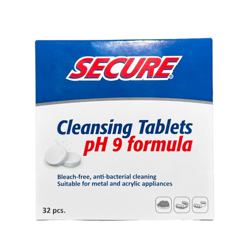 Denture Cleansing Tablets offer a powerful and convenient solution to maintain your dentures in pristine condition. These tablets effectively remove all non-water soluble residues of SECURE denture adhesive and cushions, ensuring your dentures stay fresh and comfortable.
