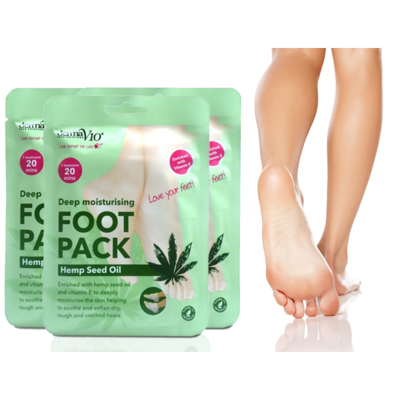 Derma V10 Deep Moisturising Foot Pack - Hemp Seed OilEnriched with hemp seed oil and Vitamin E to deeply moisturise the skin helping to soothe and soften dry, rough and cracked heels. Features:Enriched with Vitamin E.Hemp Seed Oil For Moisturising.1 Pair F