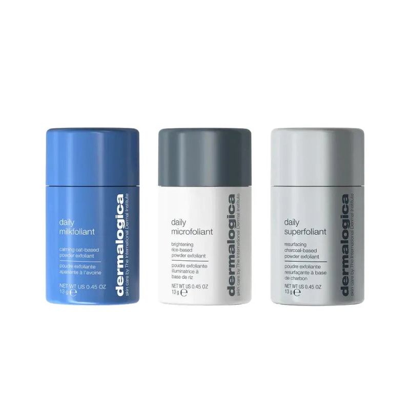 Embark on a journey to radiant skin with the Dermalogica Foliant Discovery Set. This exclusive set includes a trio of top-selling powder exfoliants, each designed to cater to different skin needs. From calming and replenishing to brightening and detoxifyin