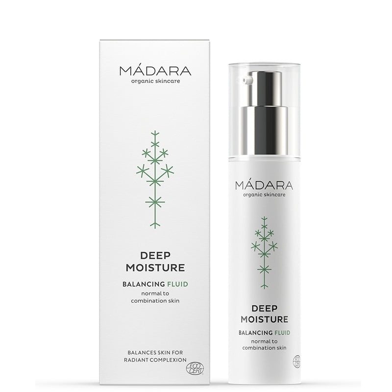 DIRECTIONS FOR USE: Apply Madara Deep Moisture Balancing Fluid in the morning or night to clean skin.