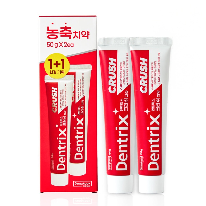 Dongkook Dentrix Crush Concentrated Toothpaste 50g*2eaDentrix Crush: Your Solution for Fresh, Healthy Teeth and GumsTired of Persistent Plaque and Gum Inflammation?Say goodbye to stubborn plaque and tartar that cling to your teeth.Wave farewell to gum infl