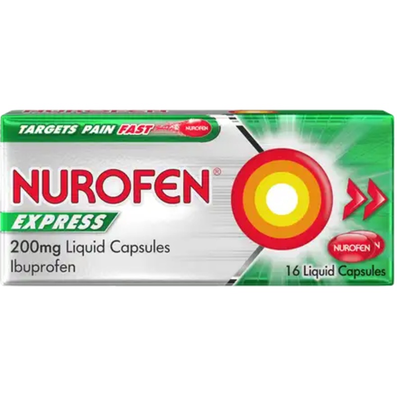 Nurofen Express Liquid Capsules release immediately in the stomach, for fast pain relief. Nurofen contains Ibuprofen, which has anti-inflammatory properties that helps relieve the symptoms of moderate pain. Nurofen Express 200mg Liquid Capsules can be take