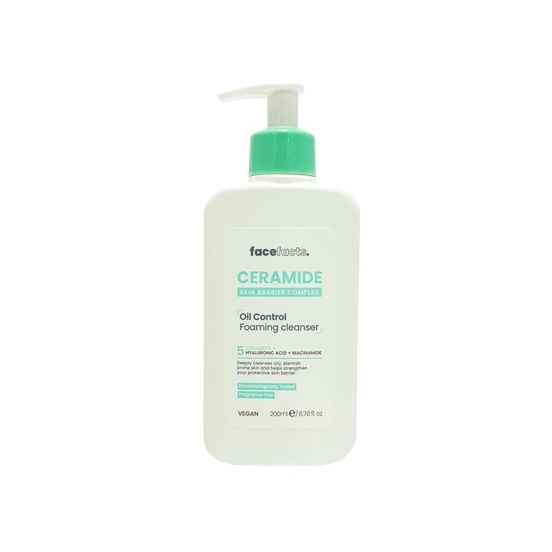 Experience clearer, balanced skin with Face Facts Ceramide Oil Control Foaming Cleanser. This 200ml formula gently removes excess oil and impurities while maintaining your skins natural moisture barrier thanks to ceramides. Ideal for oily and combination skin, it helps reduce shine without drying, leaving your complexion fresh, smooth, and comfortable every day.