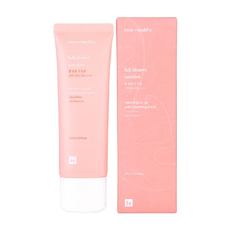 face republic Full Bloom Sun Tint 50+ PA++++ 50mlDescriptionA vegan tinted sun moisturizer that protects skin from UV rays with a sun protection of SPF 50+ PA++++.Evens out skin tone with a natural blooming finish. A reef friendly product that provides ton