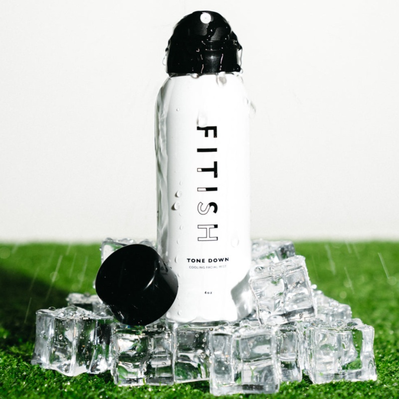 FITISH Beauty ‘Tone Down’ facial mist works to calm, soothe, and even skin tone after a workout or day in the sun. Infused with organic Aloe, peppermint, coffee and for a refreshing pick-me-up.