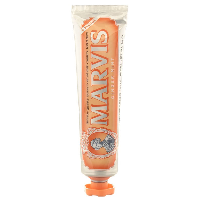 Ginger Mint combines the warm notes of Ginger with fresh Mint to create a subtly spicy sensation. Marvis toothpastes combine a mint base with interesting flavours to give a long lasting pleasurable taste sensation. The formula helps prevent tooth decay, fi