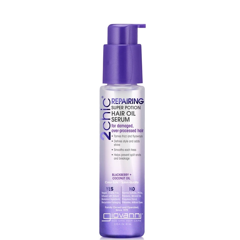 Giovanni 2chic Repairing Super Potion Hair Oil Serum is an ultra-concentrated treatment designed to tame frizz and flyaways. It also re-bonds hair endings to help prevent split ends, preventing future breakages which cause frizziness. DIRECTIONS FOR USE: A