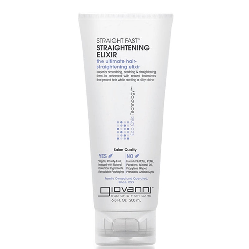 Giovanni Straight Fast Straightening Elixir is a superior smoothing, soothing, straightening formula with organic botanicals that protect hair while creating silky shine. It infuses each individual strand of hair with vitamins, nutrients and protein for strength and vitality. It is the ultimate hair straightening elixir and is a great choice for smoothing the curls, relaxing the waves and controlling the unruliest hair. This lightweight crystal clear gel adds silky shine while repelling humidity.