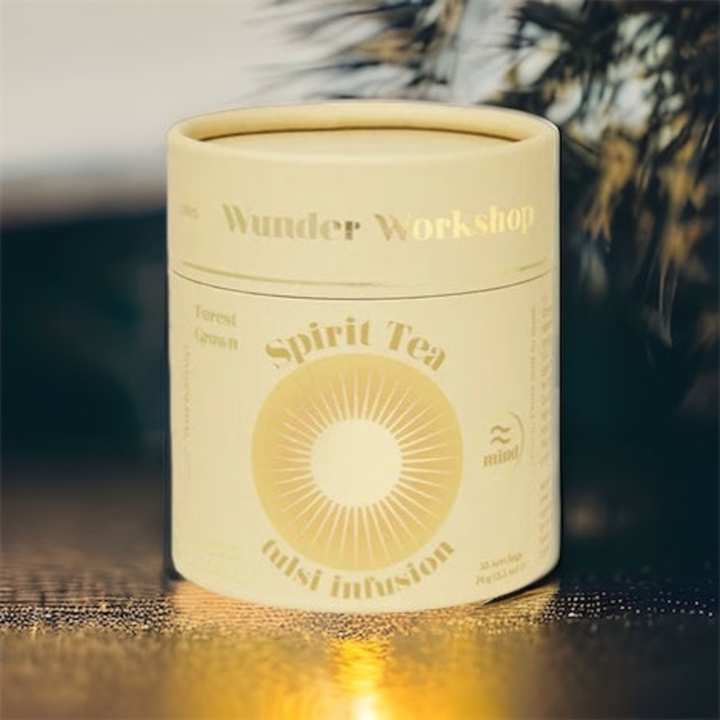 A Refreshing Ayurvedic Adaptogen TeaGolden Spirit Tea ismade with the highest quality tulsi, also known as the sacred plant Holy Basil, ethically sourced from small community farms in Sri Lanka that use Forest Gardening techniques, a sustainable way of far