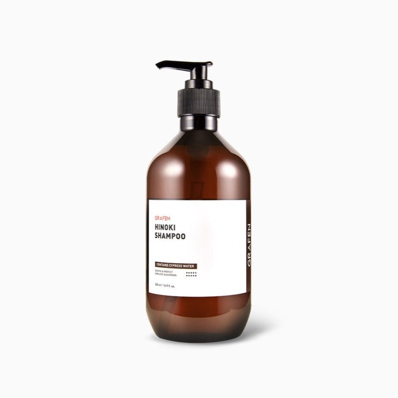 Grafen Hinoki Shampoo 500mlDescriptionCleansing the scalp with phytoncide Cypress tree cleans the scalp with an excellent antibacterial effect as it has lots of phytoncide, a natural antibacterial substance.Deep and unique forest scent Cypress tree, which