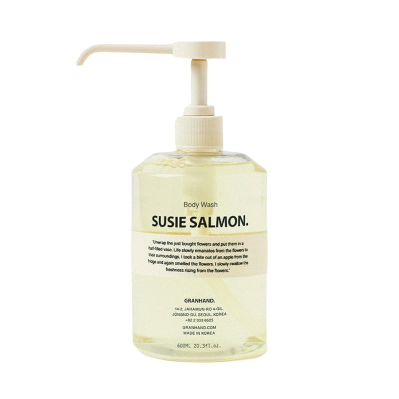 GRANHAND. SUSIE SALMON Body Wash 600mlDescriptionIndulge in a luxurious bath experience with GRANHAND. SUSIE SALMON Body Wash, a sensory delight that cleanses gently while wrapping your skin in the signature warm, musky scent of Susie Salmon. Inspired by e