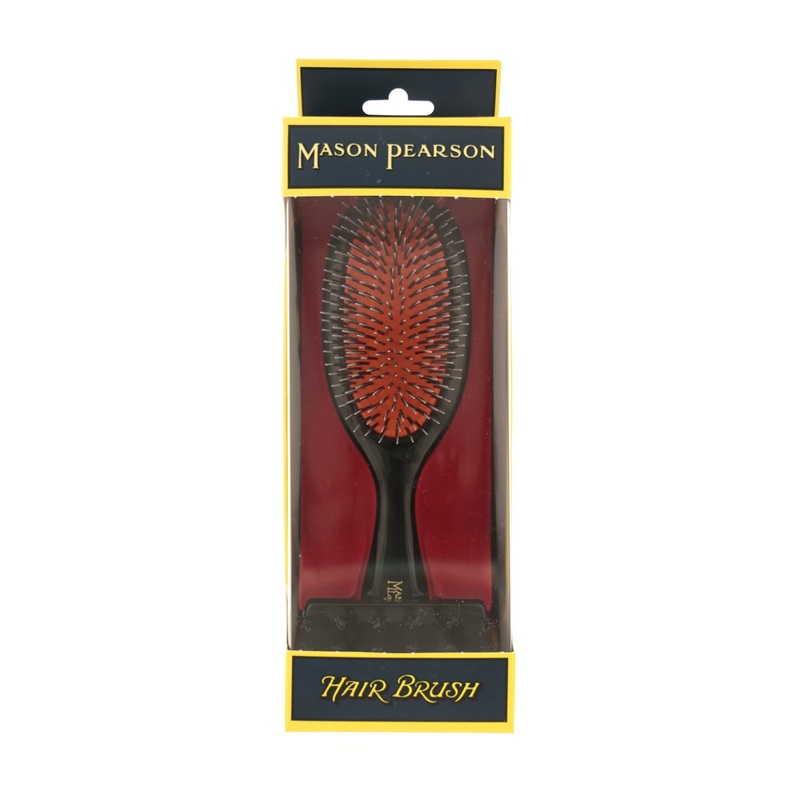 The unique rubber-cushion pad, made by hand using Mason Pearson’s original techniques, allows for effective and efficient brushing. It is kind to use and massages the scalp.