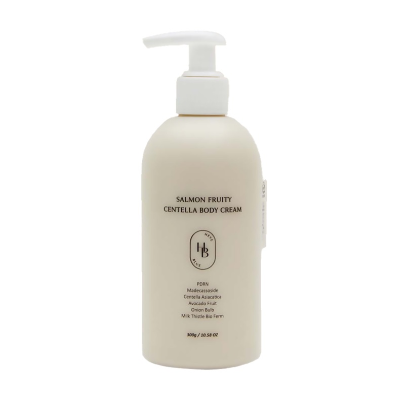 HEVE BLUE Salmon Fruity Centella Body Cream 300gDescription"Ultimate Hydration Boost" Nature-Inspired Intensive Soft Body CreamNow, nourish your body with 'Salmon.' A body cream enriched with natures gift to replenish hydration.Why does your skin still fee