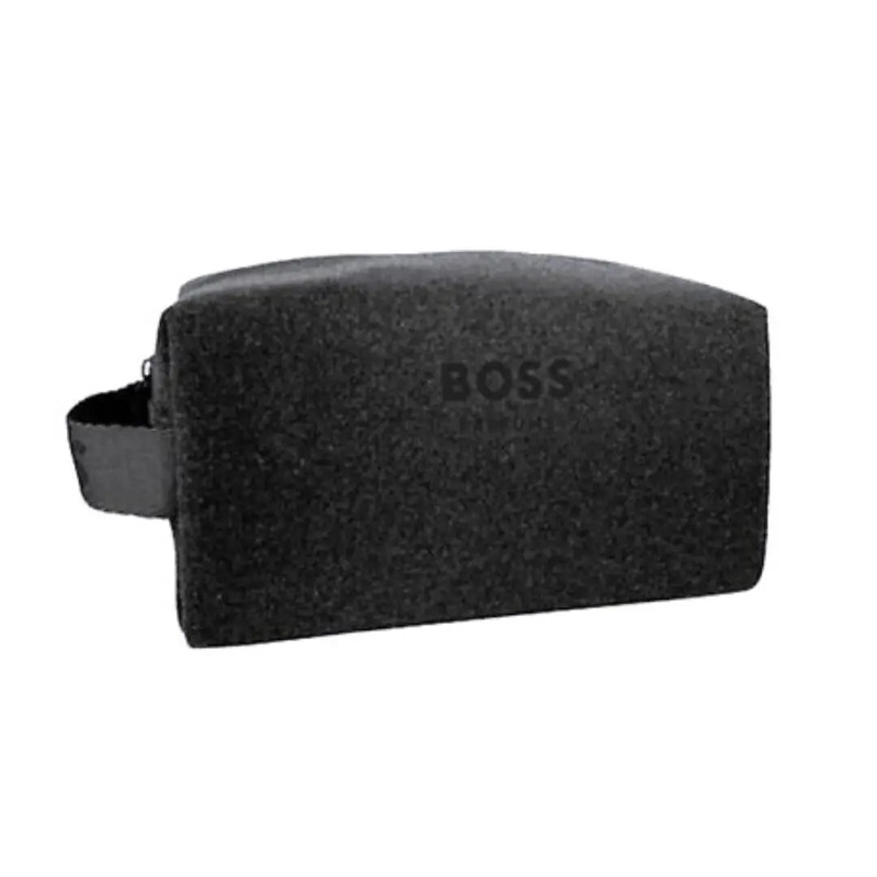 Hugo Boss Parfums Men's Grey Wool Blend Toiletries Wash BagElevate your grooming routine with the Hugo Boss Parfums Men's Grey Wool Blend Toiletries Wash Bag. This stylish and functional wash bag is crafted from a premium wool blend, offering durability an