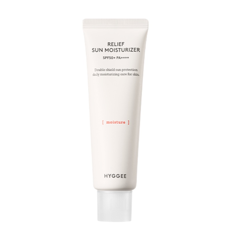 HYGGEE Relief Sun Moisturizer SPF50+ PA++++ 50mlDescriptionA moisturizing sunscreen with SPF50+ PA++++ that provides strong sun protection while keeping the skin hydrated with a gentle lotion-like formula.Hydrating Texture: Applies smoothly like a lotion,