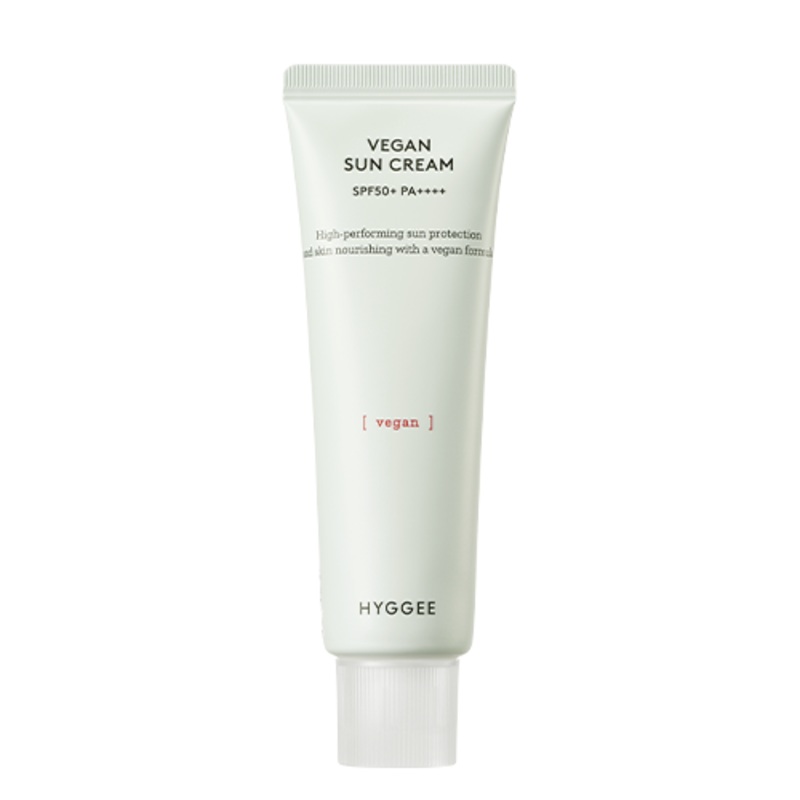 HYGGEE Vegan Sun Cream SPF50+ PA++++ 50mlDescriptionA 100% vegan-certified sunscreen offering powerful SPF50+ PA++++ protection with a lightweight and moisturizing formula.Hydrating Formula: Lightweight, non-sticky texture that absorbs quickly and leaves a