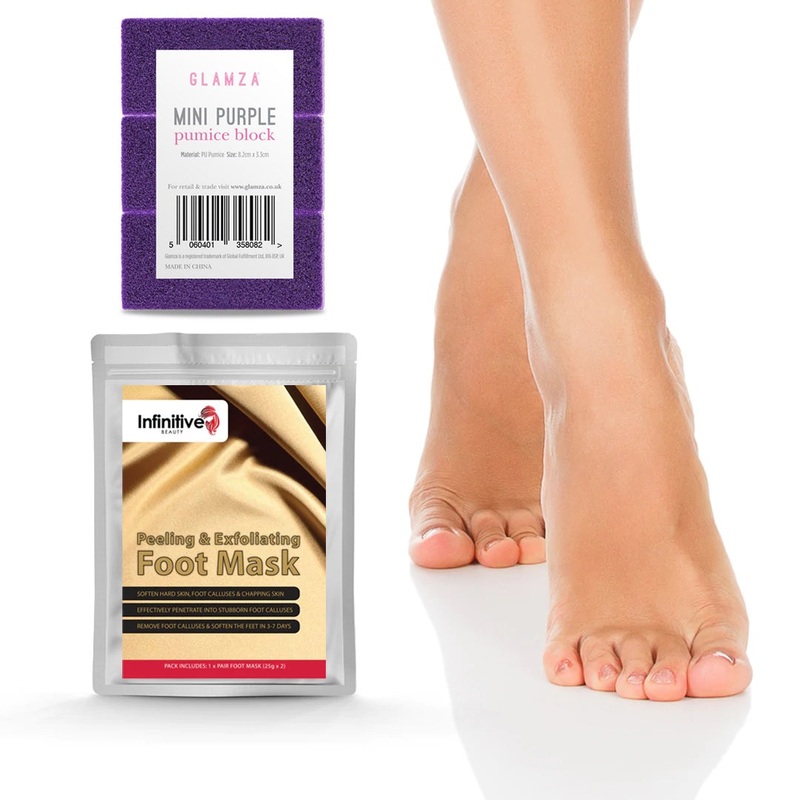 Infinitive Beauty Peeling and Exfoliating Foot Masks - 2 Masks Per PackFeatures:Remove Hard Dead SkinHelps to soften hard skinSkin CallusesChapping SkinSingle size socks that will fit up to size 9(UK) or 43(EU)How to use:Step 1:Pre-SoakingWash feet thoroug