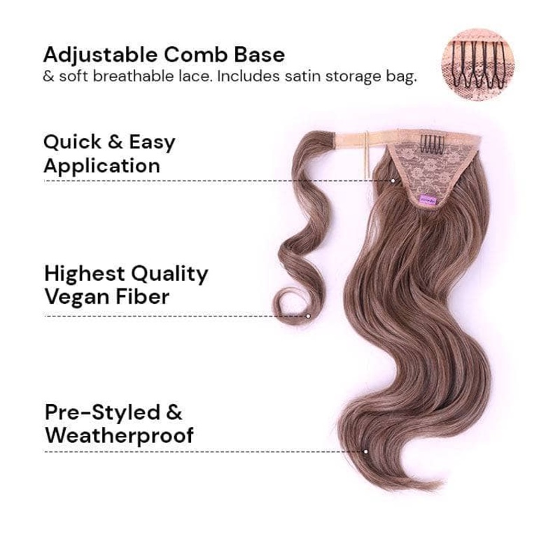 Thesepre-styled, weatherproof ponytails are the easiest way to switch up your hair color, style, length, or texture without the commitment or harmful chemical & heat damage.