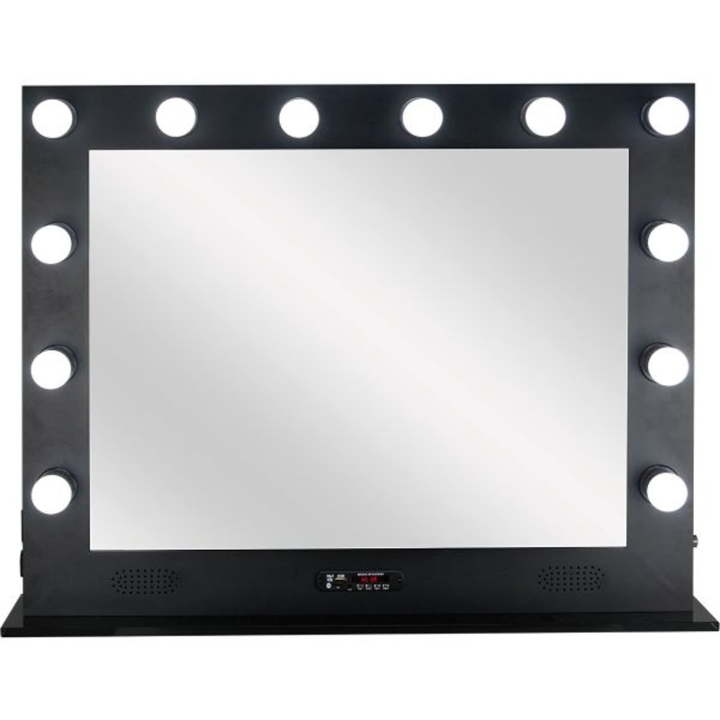 12 Dimmable LED Light Metal Body and Glass Base Hollywood XL Vanity Mirror with Bluetooth, USB, Speakers, and MP3This is the ultimate make-up mirror with beautiful construction. Modern design is the perfect decoration for your home or your professional stu