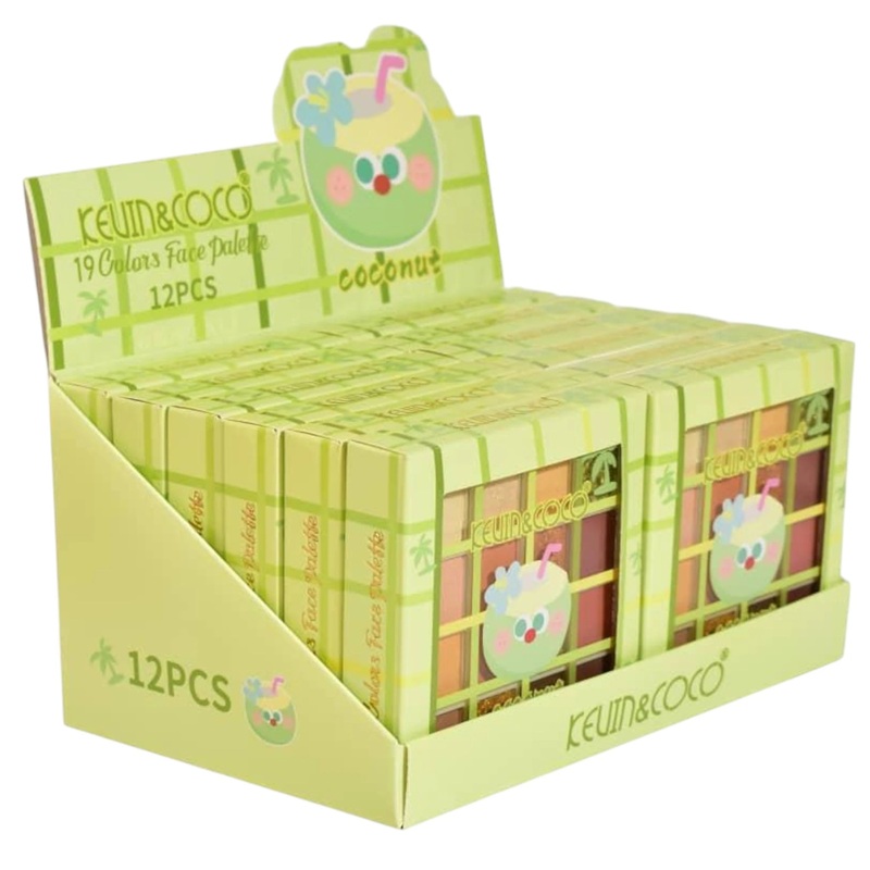 Kevin & Coco Coconut Eyeshadow Palette - Wholesale Display 12 UnitsThe Fruit Paradise 19-Color Makeup Set is a vibrant and playful collection inspired by the juicy freshness of tropical fruits.This all-in-one palette features 19 highly pigmented shades, ra