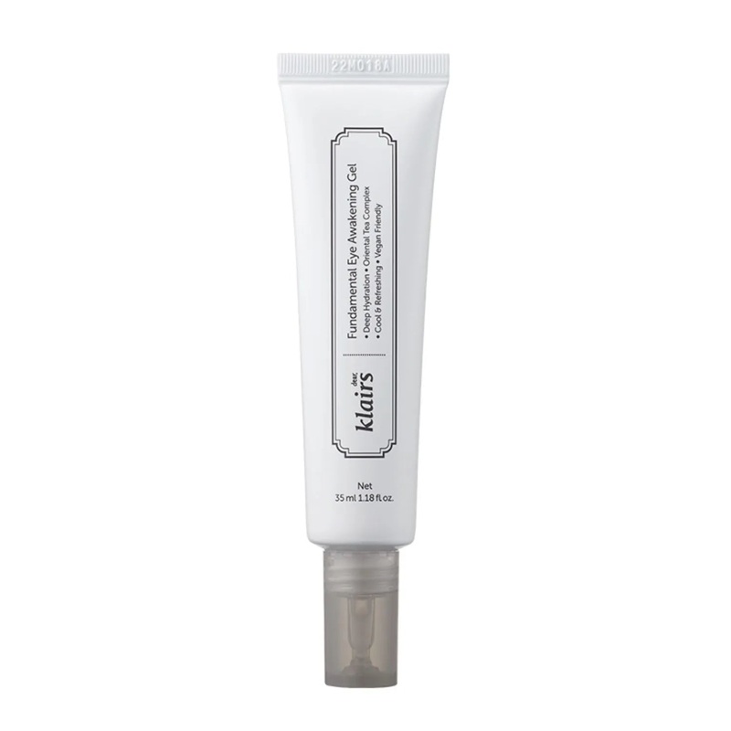 Klairs Fundamental Eye Awakening Gel 35mlDescriptionThis clean, moisturizing eye gel depuffs eyes with cooling hydration for a more rested look.Cruelty-free and Vegan friendly.A perfect pump of daily caffeine to awaken fatigued eyes.Offers deep hydration a