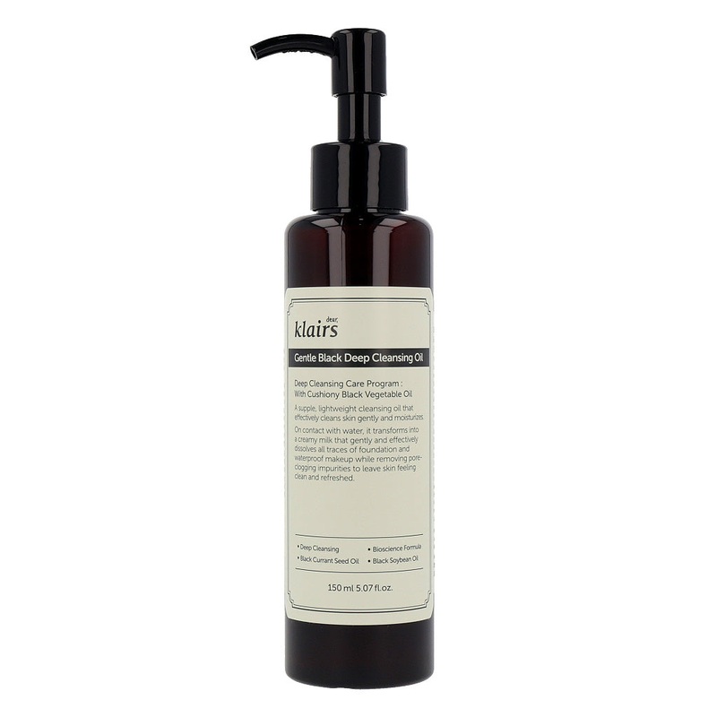 Klairs Gentle Black Deep Cleansing Oil 150mlFeaturesThe miracle of 'black' from nature! Mild cleansing oil that cleanses deep within the pores.A supple, lightweight cleansing oil that effectively cleans the skin gently and moisturizes.On contact with water