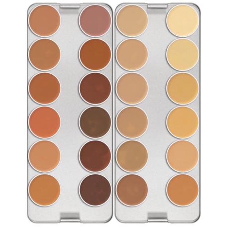 Dermacolor Camouflage Creme Palette with 24 colors is ideal for professional use. Dermacolor Camouflage Creme is an especially highly pigmented make up which is designed to correct and cover skin disfigurements, discolorations and tattoos. Dermacolor Camou