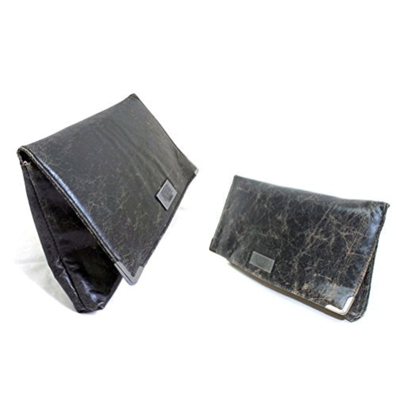 Color: BlackFeatures: Desinger Clutch Bag from the House of Diesel PerfumeBeauifully Lined, Size 30 x18 cm approxWith Tags in Sealed Retail BagDetails: Designer Ladies Distressed Dark Grey/Black Leather Look Clutch Bag by Diesel Perfume with Metal Diesel L