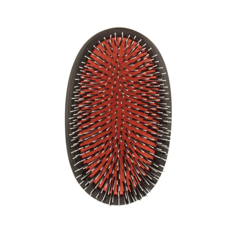 The unique rubber-cushion pad, made by hand using Mason Pearson’s original techniques, allows for effective and efficient brushing. It is kind to use and massages the scalp.