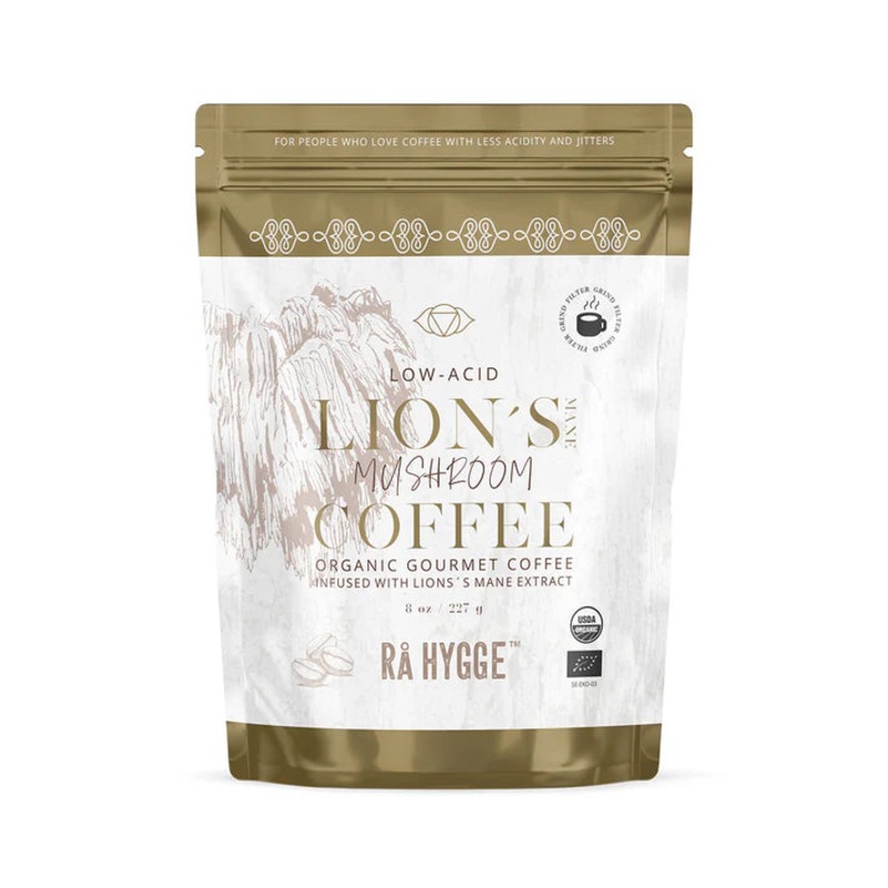 Light-medium roasted low-acid coffee with Lions Mane mushroom
