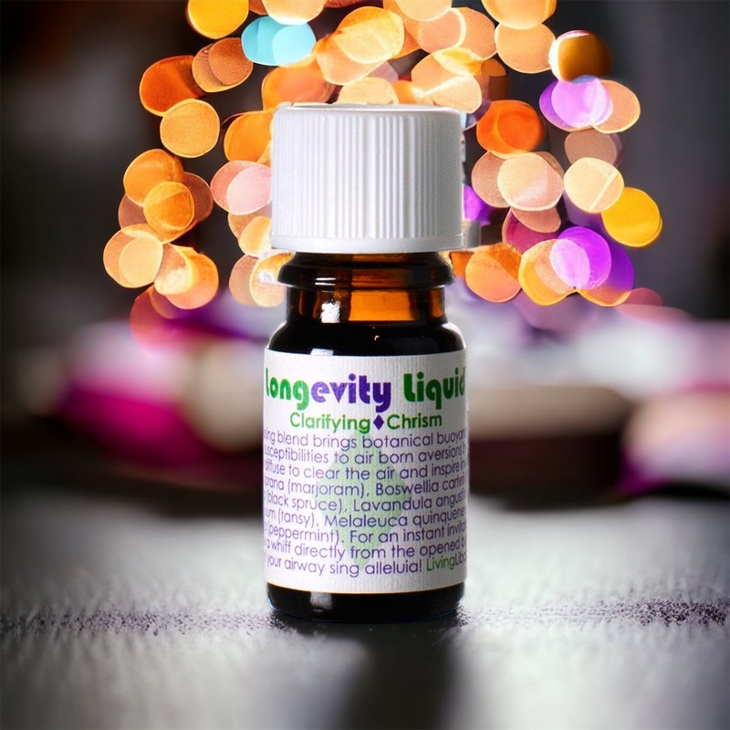 Living LibationsLongevity Liquidis your breaths best friend: it endows inhalations and makes exhalations ecstatic. Longevity Liquid is a breath-blessing blend that brings botanical buoyancy to bound-up breath. Slide by susceptibilities to air born aversions by applying to the chest or nose or diffuse to elevate the atmosphere, clear the air, and inspire invigorating clarity. Formerly, Lungevity new name yet the formula remains the same.
