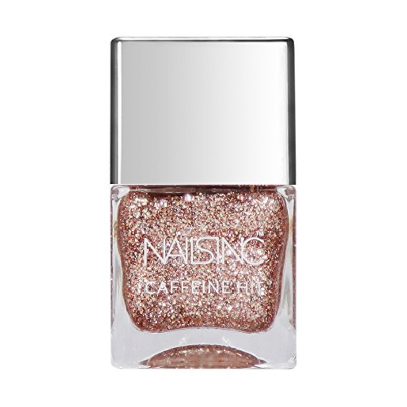 Features: The world's first caffeine infused long wear polish in shades of rich coffee brownsFormula contains a dose of caffeine to stimulate regeneration for healthy, strong nails.Rise & Grind is a crushed gold shade14 ml bottleDetails: The Caffeine Hit c